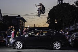 Bfree boosts a 540 over my car at First Friday in Oakland, California.
