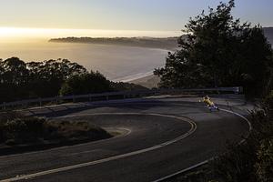 Cameron Talbott bombing downhill to Stinson Beach, California.